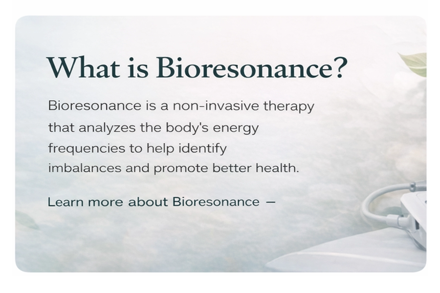 Bioresonance is a complementary wellness approach that works with the body’s natural energetic signals. Every cell, tissue, and organ in the body produces subtle electromagnetic frequencies. Bioresonance technology is designed to detect these signals and identify patterns that may indicate energetic imbalances.